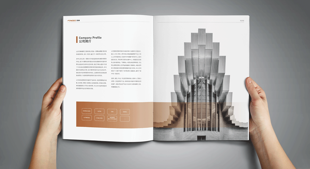 項目背景:2022年,智睿經過與山東頂典建筑工程有限公司的雙方溝通面談,確認了畫冊設計合作。